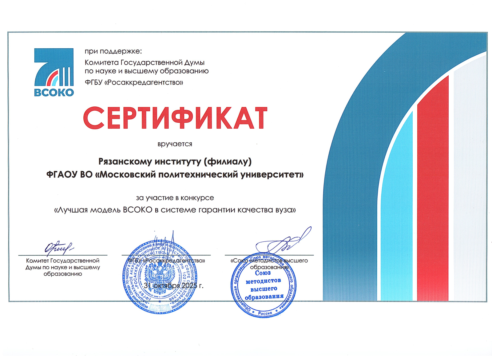 Сертификат качества ФЭПО-pro 2023 весна