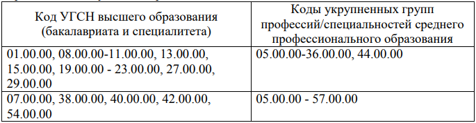 Таблица соответствия направленности среднего профессионального образования