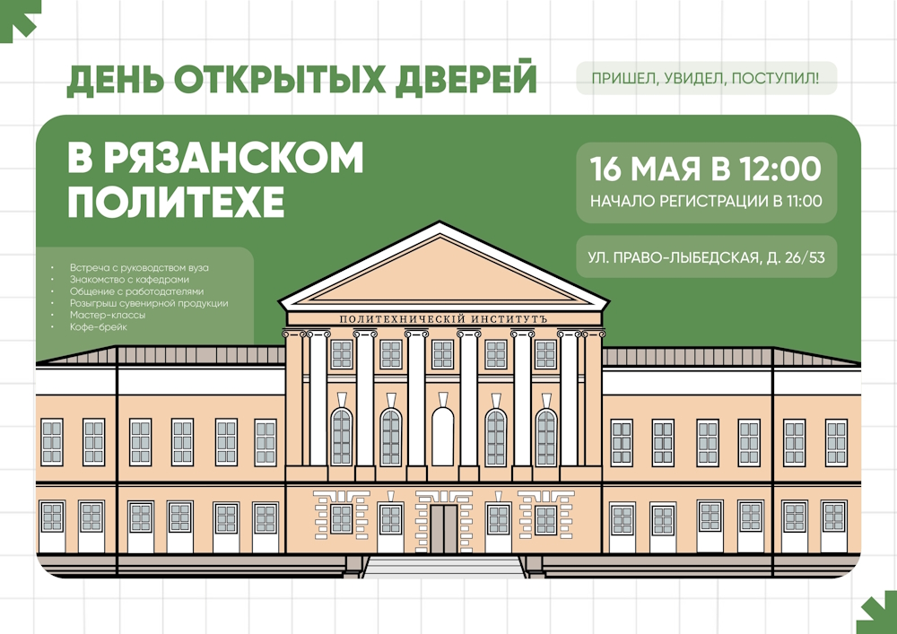 Приглашаем вас на День открытых дверей Рязанского Политеха. Он состоится 16 мая, в 12:00.