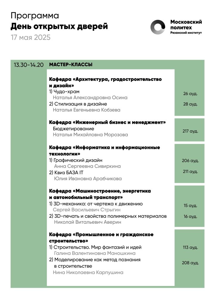 Напоминаем вам, что уже в эту субботу, 17 мая, состоится День открытых дверей Рязанского Политеха.
