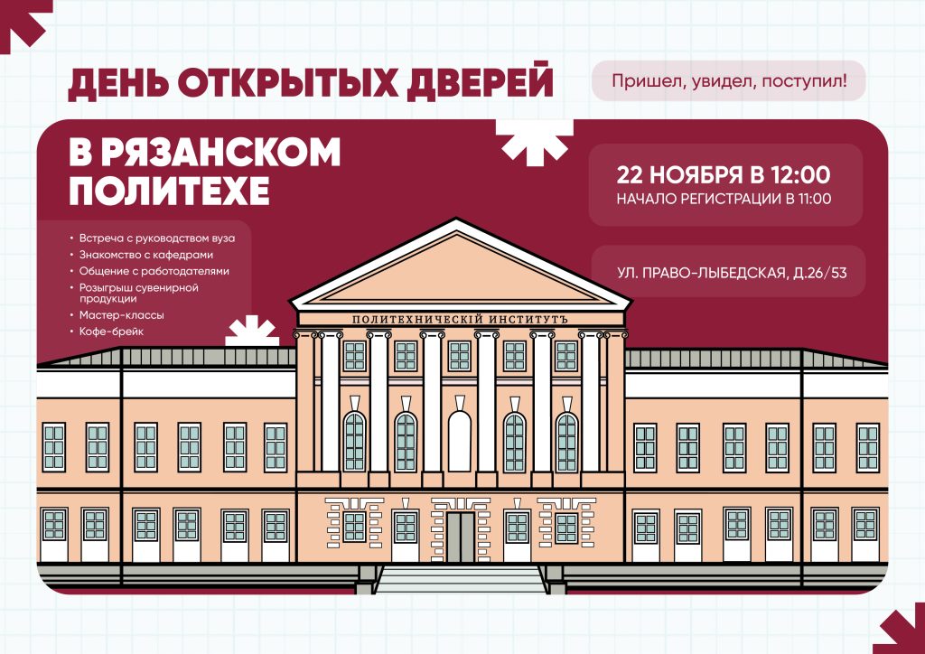Приглашаем вас на День открытых дверей Рязанского Политеха. Он состоится уже в эту субботу, 22 ноября, в 12:00.