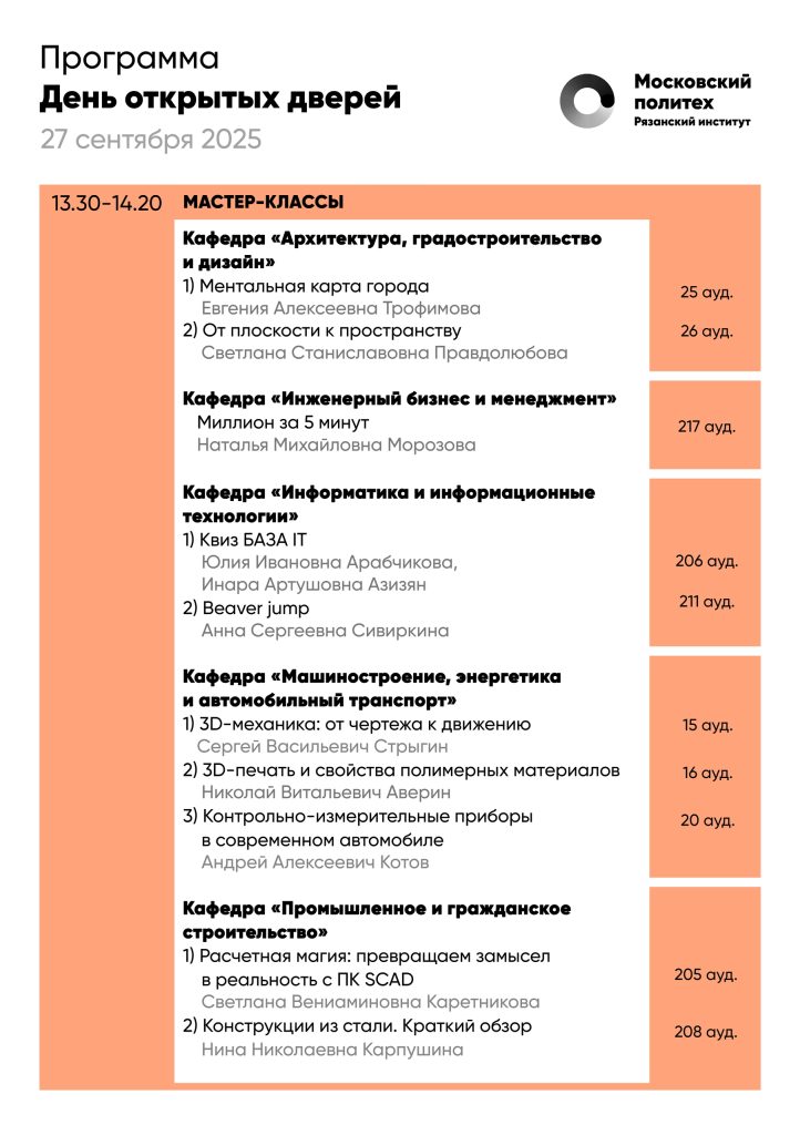 Напоминаем вам, что уже в эту субботу, 27 сентября, состоится День открытых дверей Рязанского Политеха.
