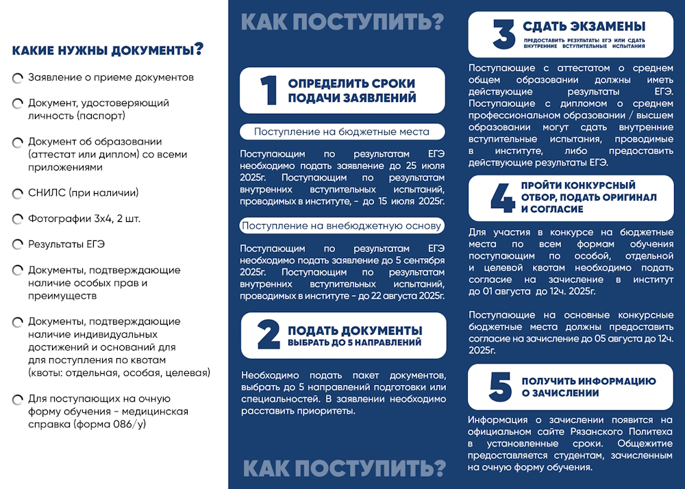 Готовы стать студентом Рязанского Политеха? Тогда вам нужно знать, какие документы необходимо предоставить для поступления.