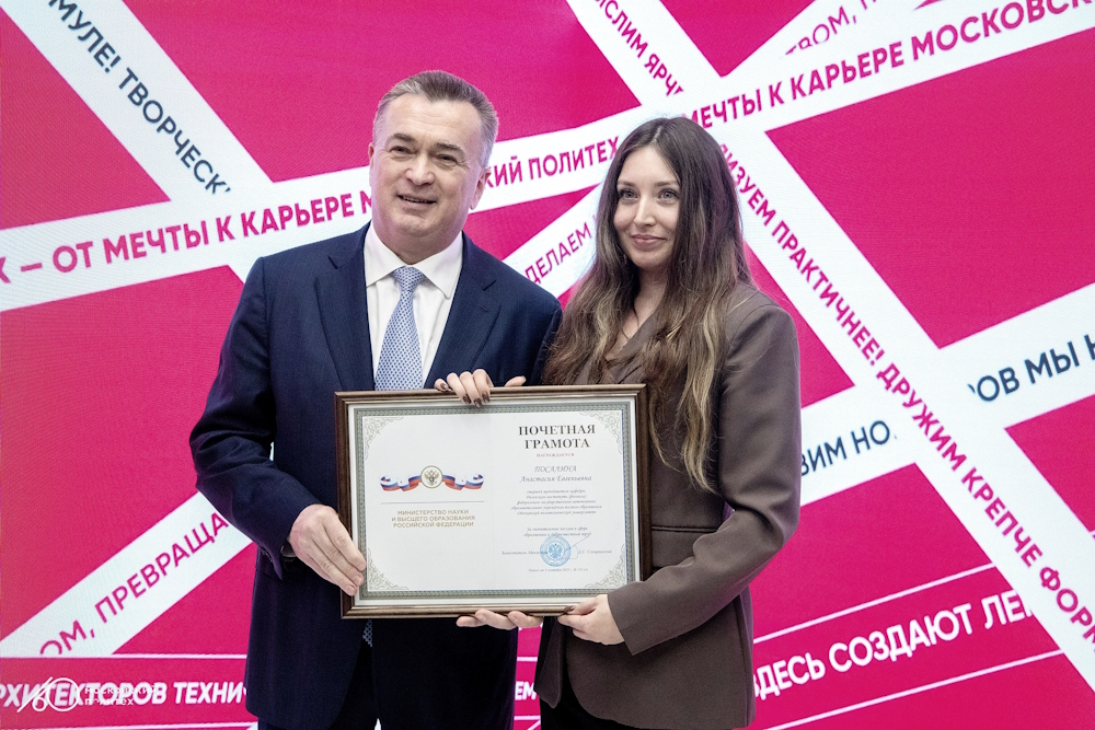 На празднике работа наших преподавателей была высоко отмечена. Ректор Московского Политеха Владимир Владимирович Миклушевский вручил им заслуженные награды: