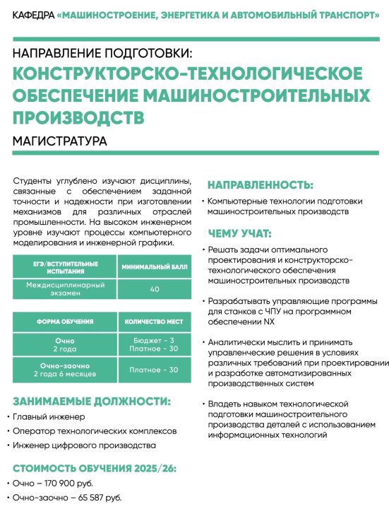 Сегодня мы хотим познакомить вас с направлениями подготовки кафедры “Машиностроение, энергетика и автомобильный транспорт”