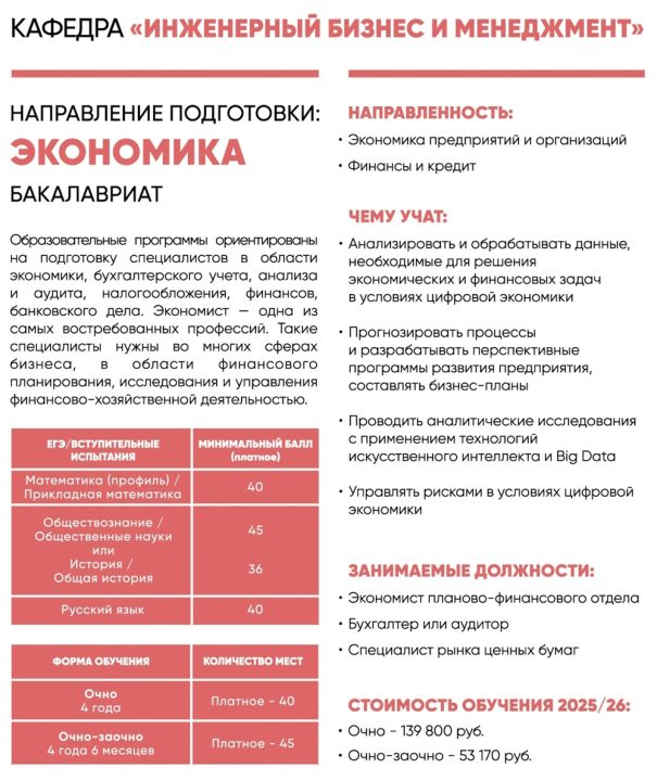 Сегодня представляем вам направления подготовки кафедры “Инженерный бизнес и менеджмент”