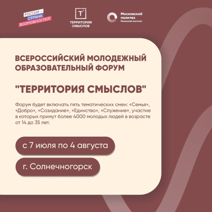 На базе Мастерской управления “Сенеж” пройдет Всероссийский молодежный образовательный форум “Территория смыслов”