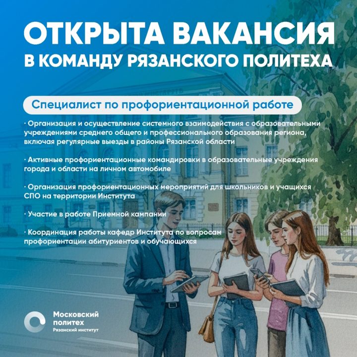 Рязанский институт (филиал) Московского политехнического университета объявил конкурс на замещение должности специалиста по профориентационной работе