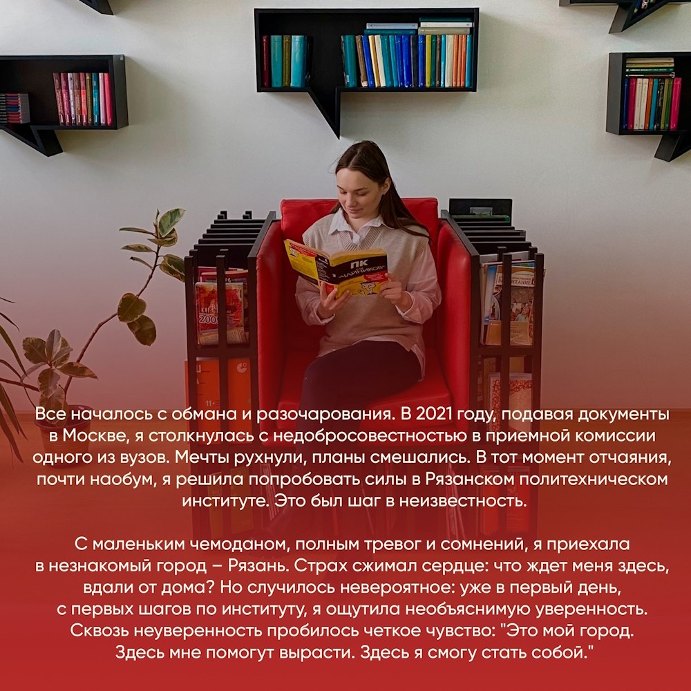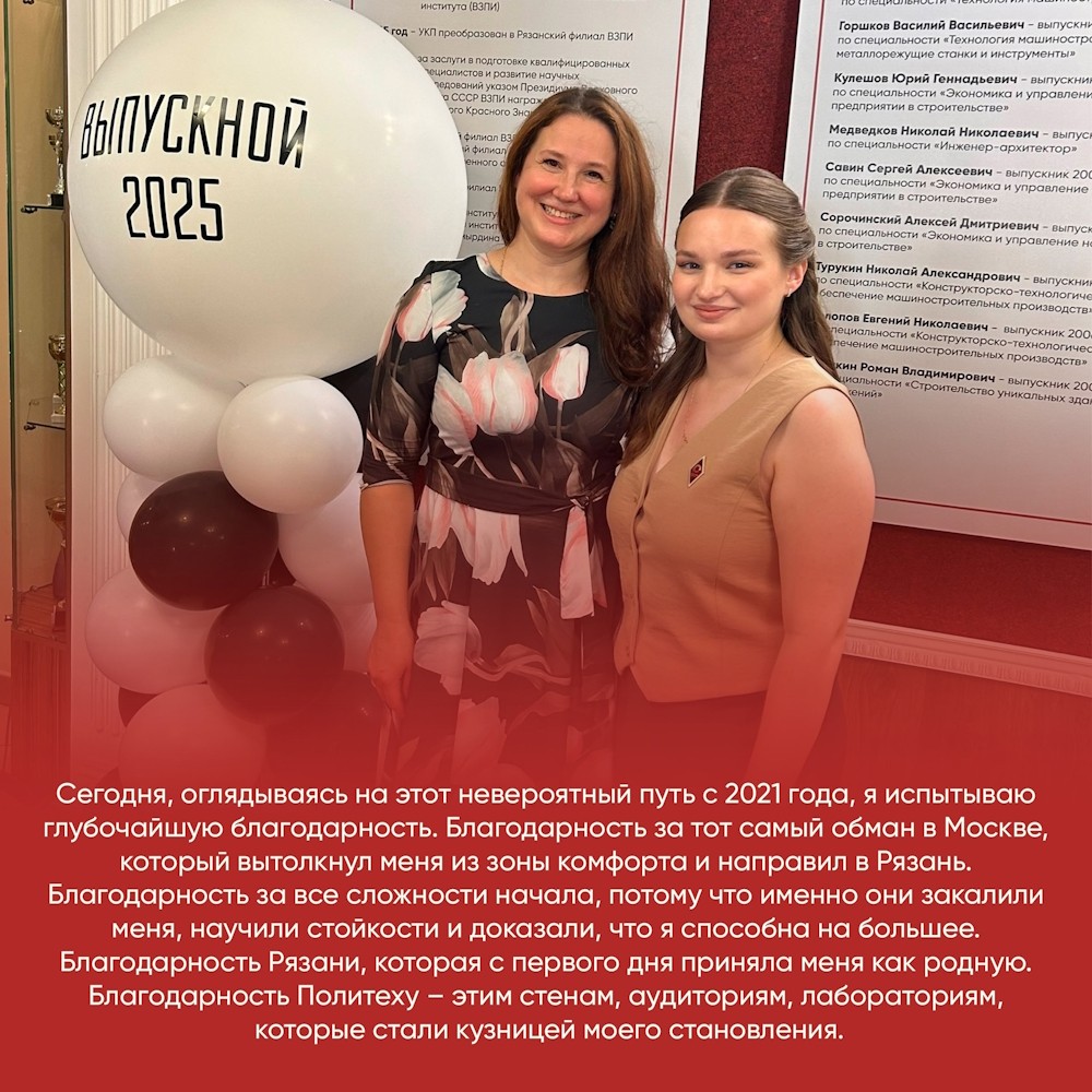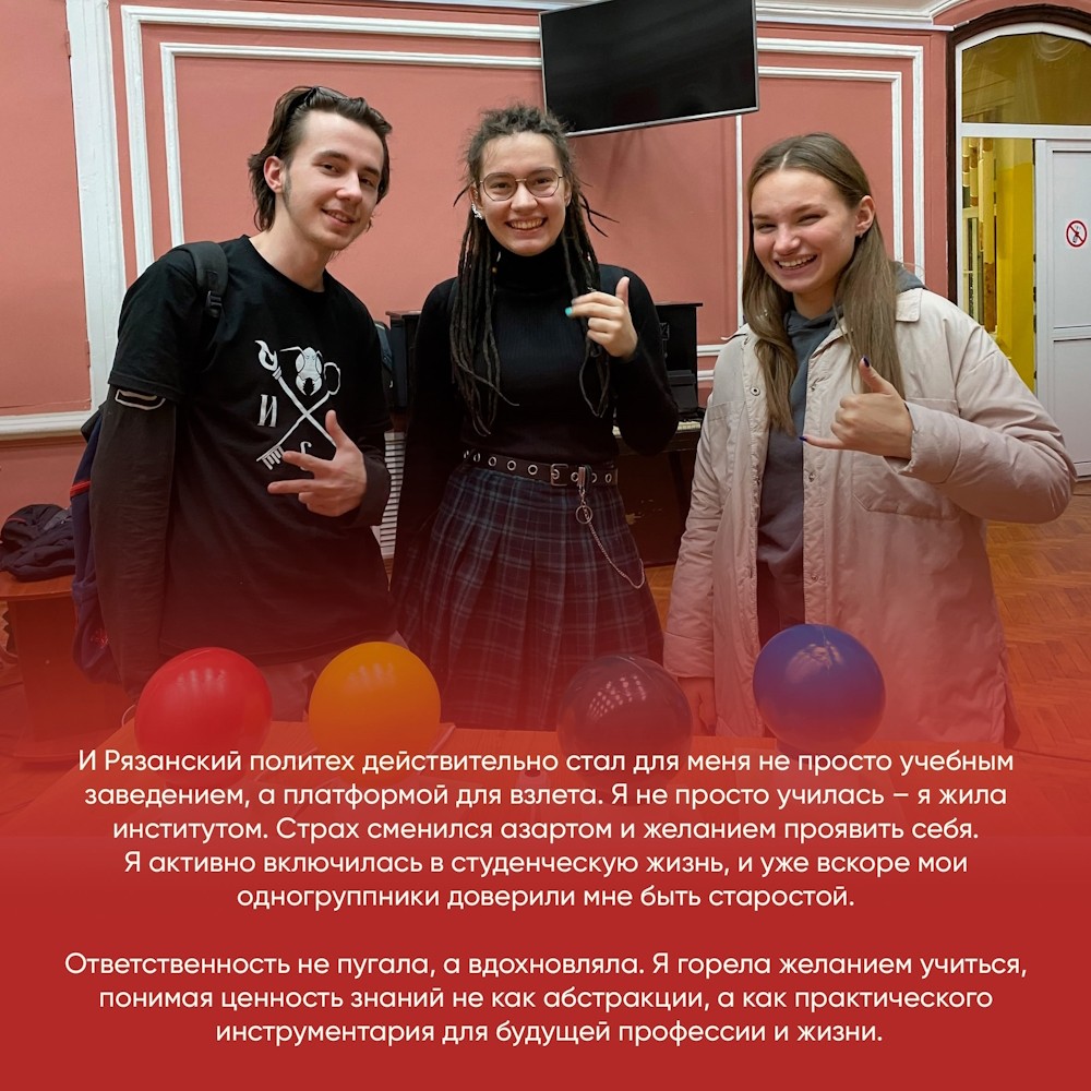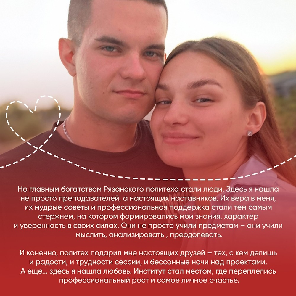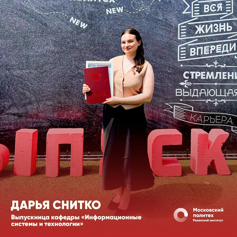 Продолжаем цикл публикаций о наших выпускниках. Сегодня о своей учебе в Рязанском Политехе рассказывает выпускница кафедры “Информатика и информационные технологии” Дарья Снитко.