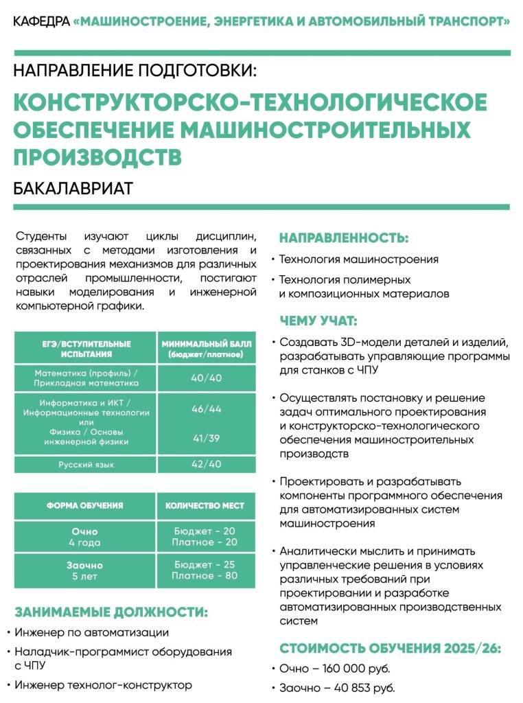 Сегодня мы хотим познакомить вас с направлениями подготовки кафедры “Машиностроение, энергетика и автомобильный транспорт”