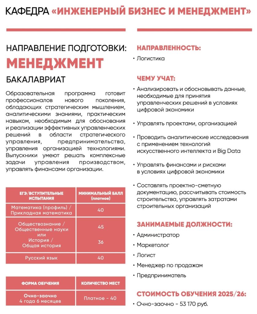 Сегодня представляем вам направления подготовки кафедры “Инженерный бизнес и менеджмент”