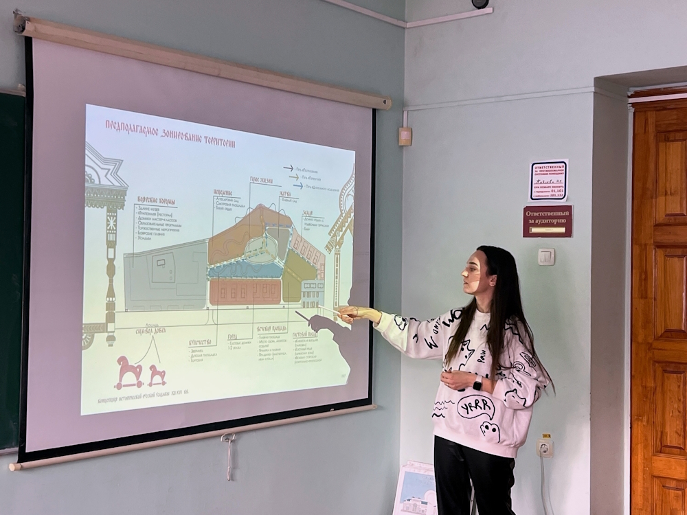 Сегодня состоялась защита проектов студентов 5 курса кафедры “Архитектура, градостроительство и дизайн”. Под руководством доцента кафедры Натальи Александровны Осиной, а также при участии директора фирмы “Витарус” Игоря Александровича Коженкина и члена союза архитекторов Надежды Михайловны Прянишниковой, студенты представили свои концепции туристическо-музейного комплекса. В рамках защиты были разработаны фасады и планы для музеев, мастерских и глэмпинга.