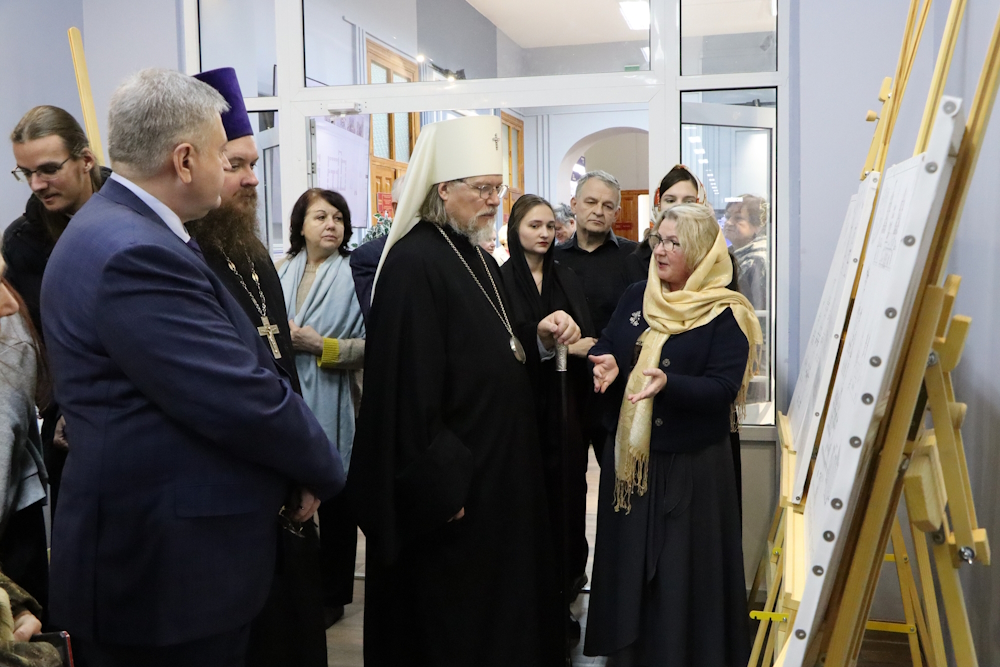 Особый интерес в ходе визита Митрополита вызвала презентация работ студентов. Доцент кафедры архитектуры, градостроительства и дизайна Наталья Александровна Осина представила вниманию Владыки чертежи знаковых церковных сооружений, выполненных будущими архитекторами в рамках учебного процесса. Митрополит Марк высоко оценил уровень подготовки студентов и практическую значимость таких проектов.