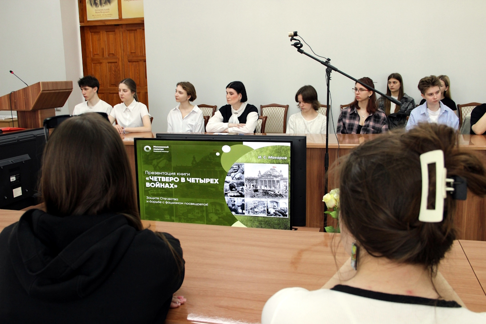 Сегодня в Рязанском Политехе состоялась презентация книги “Четверо в четырёх войнах”, написанной Иваном Семёновичем Макаровым. Ее представил сын автора, председатель Рязанской организации Союза архитекторов России Вячеслав Иванович Макаров. Книга посвящена защите Отечества и борьбе с фашизмом, и она является важным вкладом в сохранение исторической памяти.