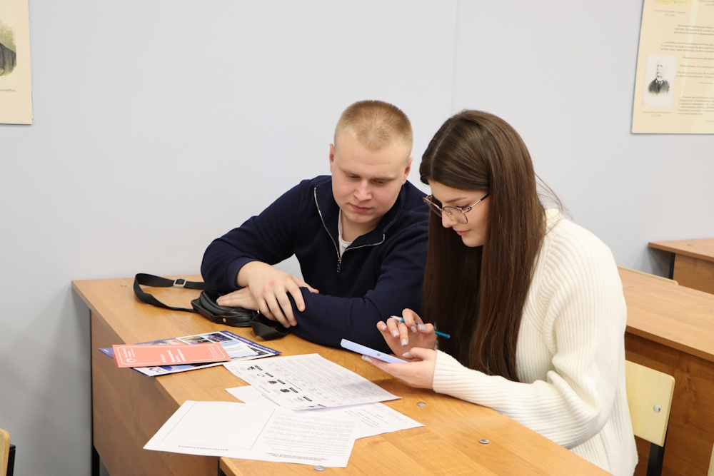 Официальная часть программы прошла в актовом зале с выступлением директора института Валерия Сергеевича Емеца. Секретарь приемной комиссии Лариса Евгеньевна Демидова подробно рассказала о результатах приема за 2025 год и некоторых нововведениях на 2026. Заместитель директора по молодежной политике и развитию Алексей Вадимович Агузаров ознакомил присутствующих с мерами социальной поддержки студентов.