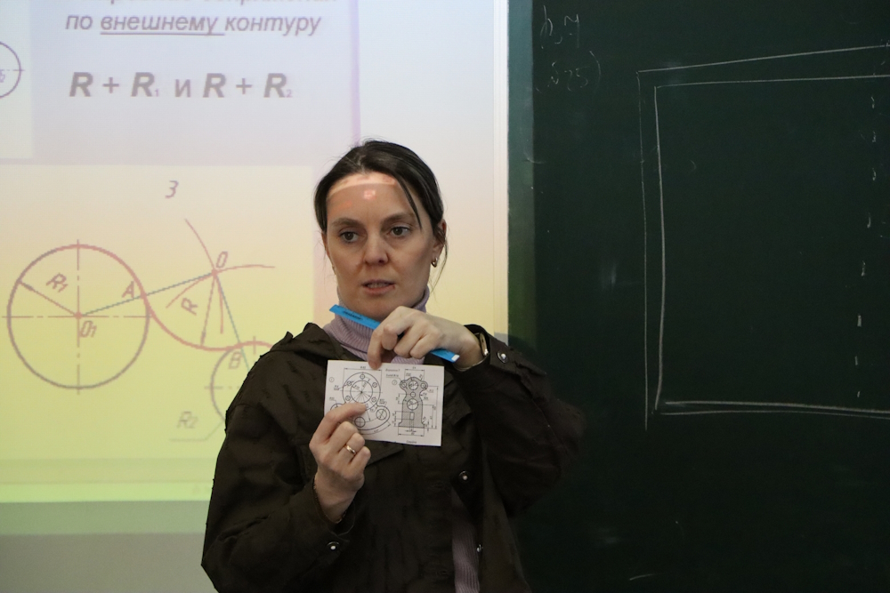 Старший преподаватель кафедры ПГС проводит уроки черчения для учащихся МБОУ “Школа №39 “Центр физико-математического образования””