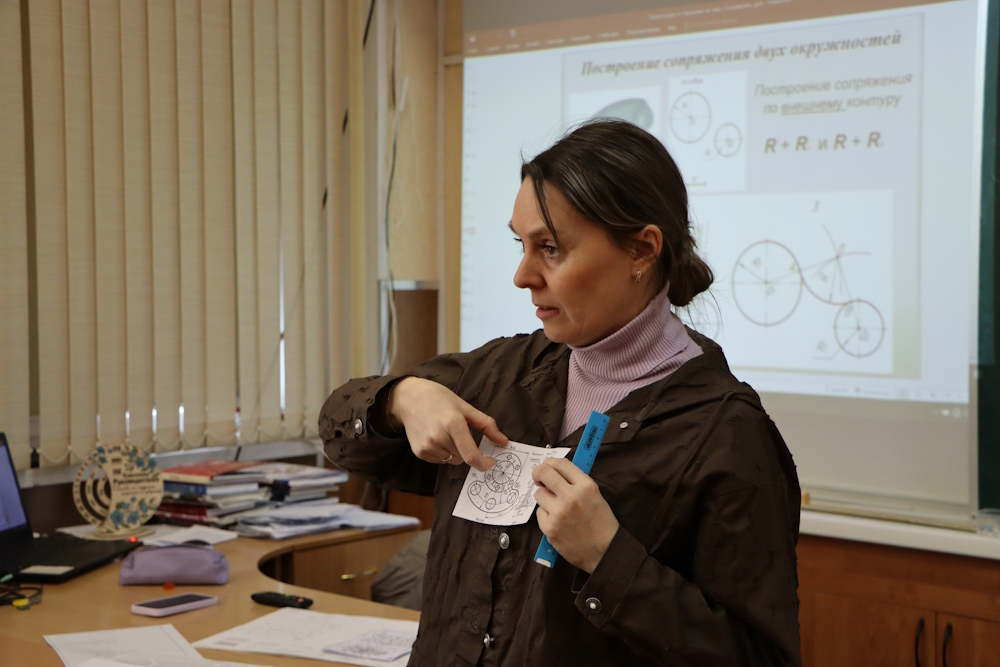На текущих занятиях школьники приступили к изучению и практическому выполнению построения сопряжения двух окружностей. Эта тема является одной из базовых в инженерной графике и важна для формирования профессиональных навыков.