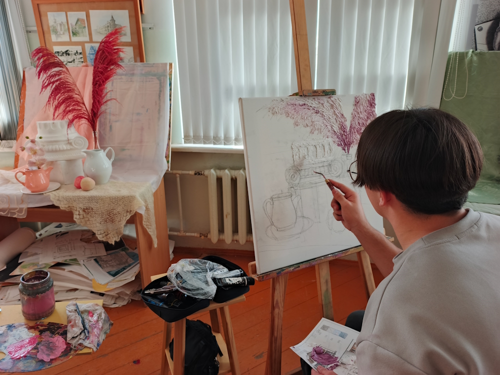 Студенты 2 курса направления подготовки “Дизайн” осваивают технику фактурной живописи мастихином