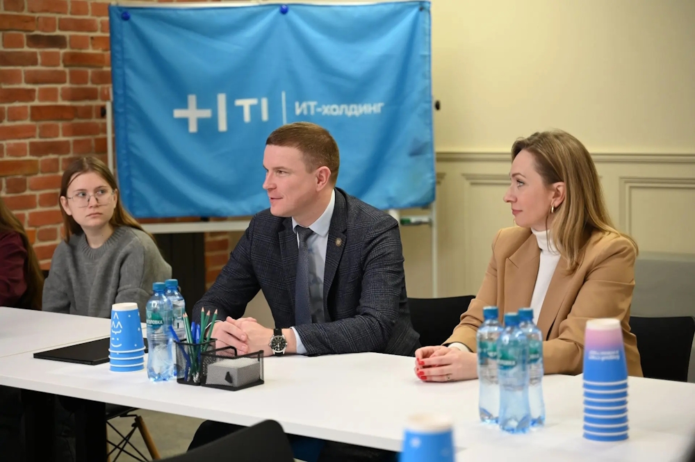 Студенты второго курса кафедры “Информатика и информационные технологии” Рязанского Политеха Кирилл Горобец и Иван Хубежов вместе с учащимися станкостроительного колледжа посетили рязанский офис ИТ-холдинга Т1. Мероприятие прошло в формате открытого диалога с представителями индустрии. Во встрече принял участие министр цифрового развития Рязанской области Максим Александрович Соников, который поздравил участников с Днём российского студенчества.