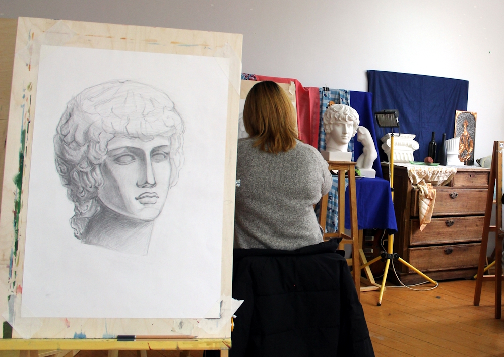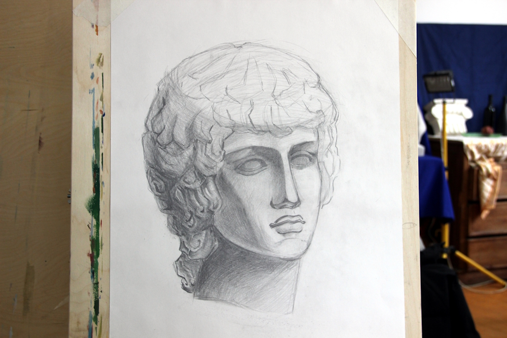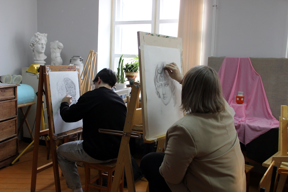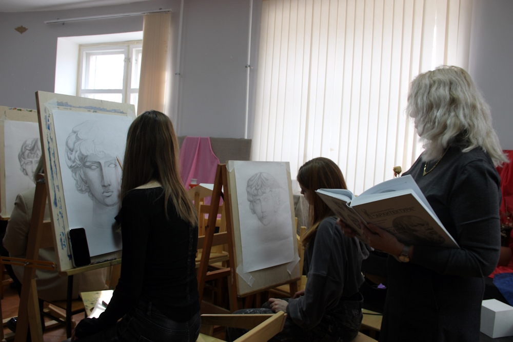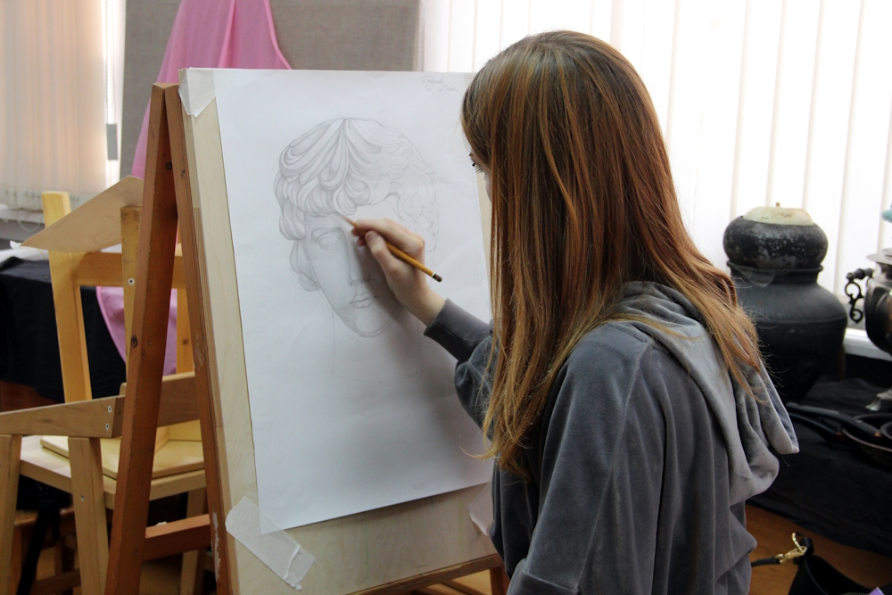 Студенты направления подготовки “Дизайн” в рамках занятия “Рисунок” познакомились с пропорциями лица и впервые выполнили изображение античной головы скульптуры Антиноя