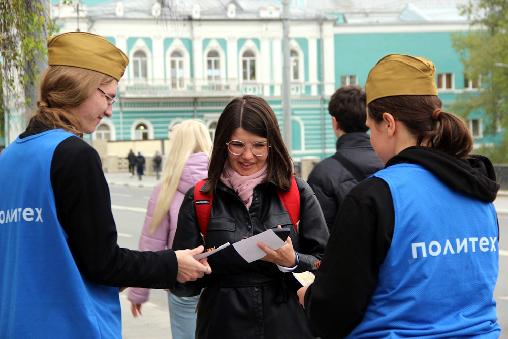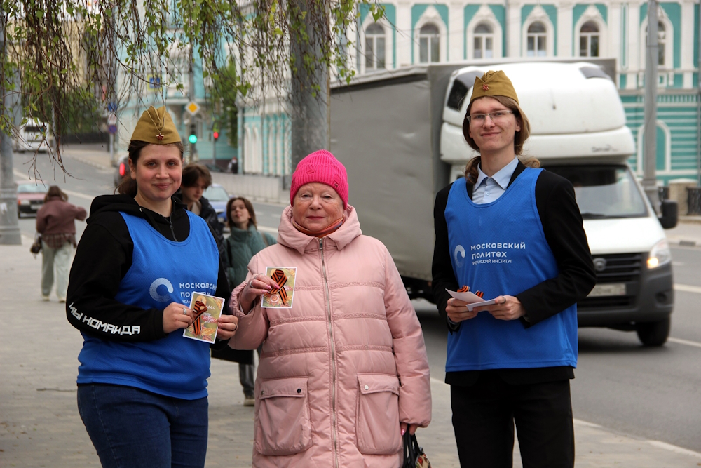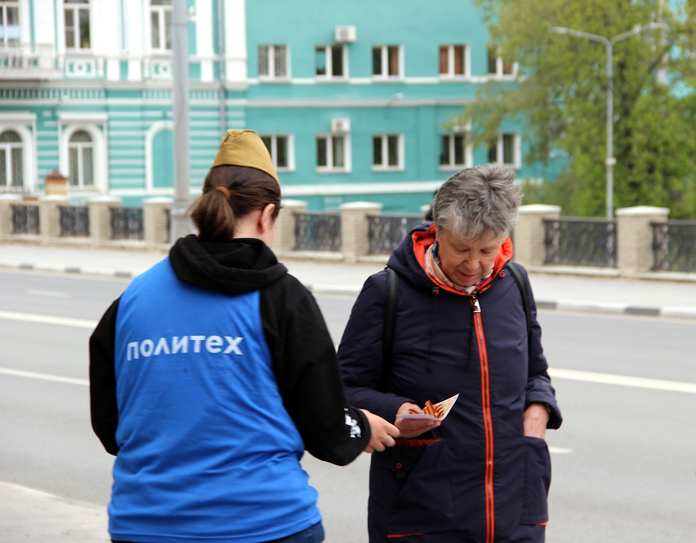 Студенты Рязанского Политеха продолжают активное участие во Всероссийской патриотической акции “Георгиевская ленточка”. В рамках акции, проходящей в эти дни, студенты раздают жителям города Рязани патриотические открытки и георгиевские ленточки, символизирующие память о подвиге советского народа в Великой Отечественной войне. Акция призвана напомнить о важности сохранения исторической памяти и воспитания патриотизма у молодого поколения.