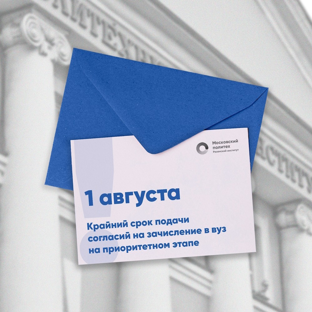 Напоминаем вам, что уже завтра заканчивается подача согласий на зачисление в Рязанский Политех на приоритетном этапе.