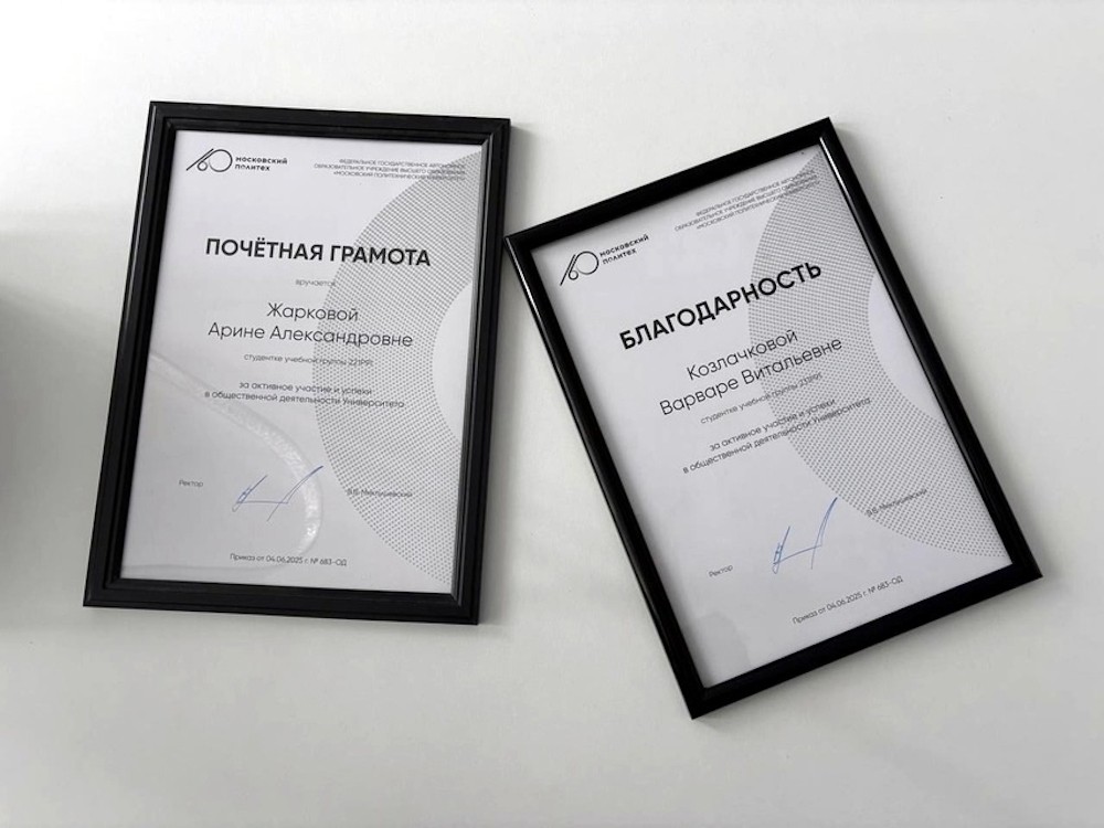 Почетные грамоты и благодарности ректора за активное участие и успехи в общественной деятельности получили студентки кафедры АГиД Арина Жаркова и Варвара Козлачкова . Их усилия и преданность общему делу заслуживают признания и служат примером для остальных студентов.