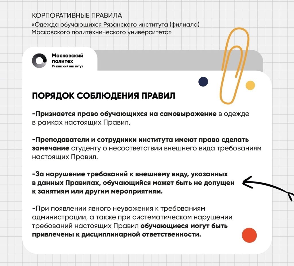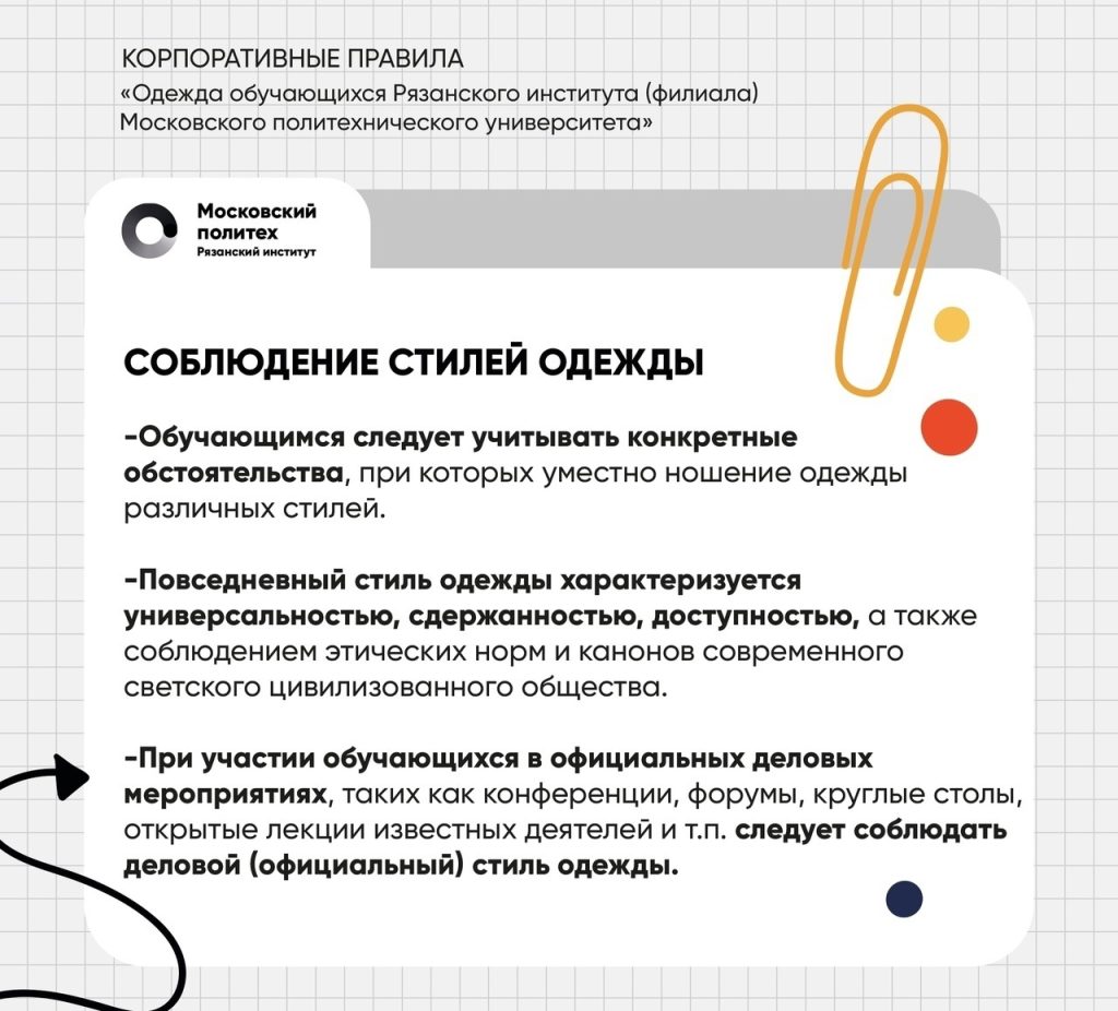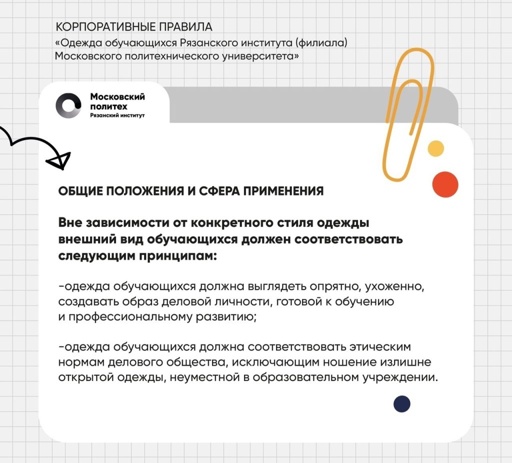 В Рязанском Политехе приказом директора установлены требования к одежде и внешнему виду обучающихся - Рязанский институт (филиал) Московского политехнического университета В Рязанском Политехе приказом директора установлены требования к одежде и внешнему виду обучающихся - Рязанский институт (филиал) Московского политехнического университета