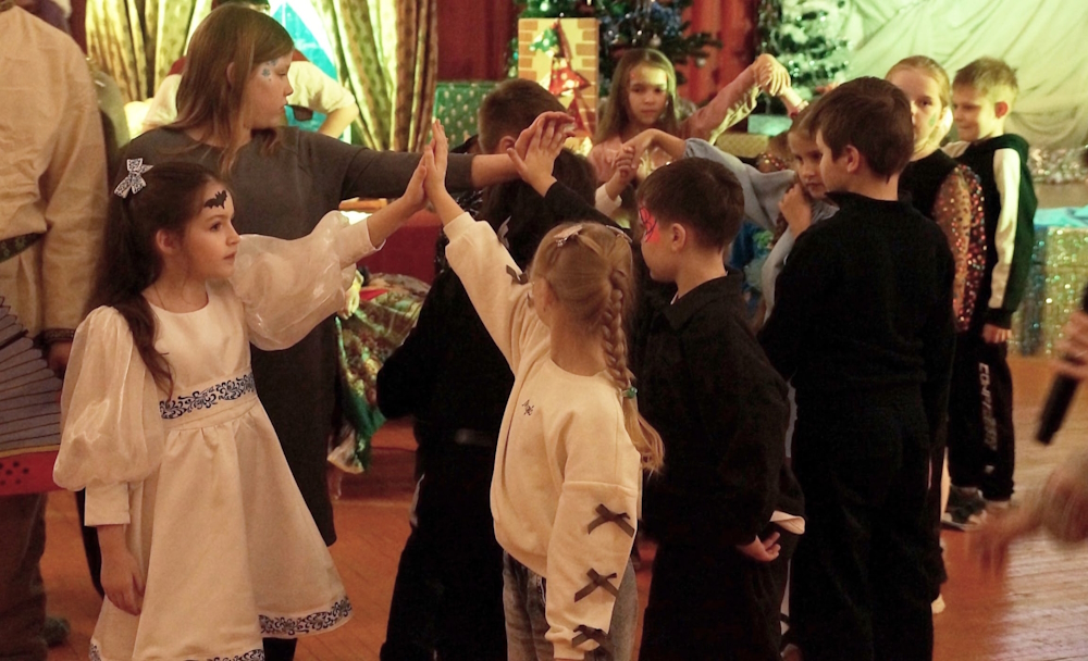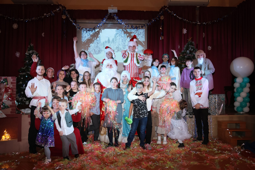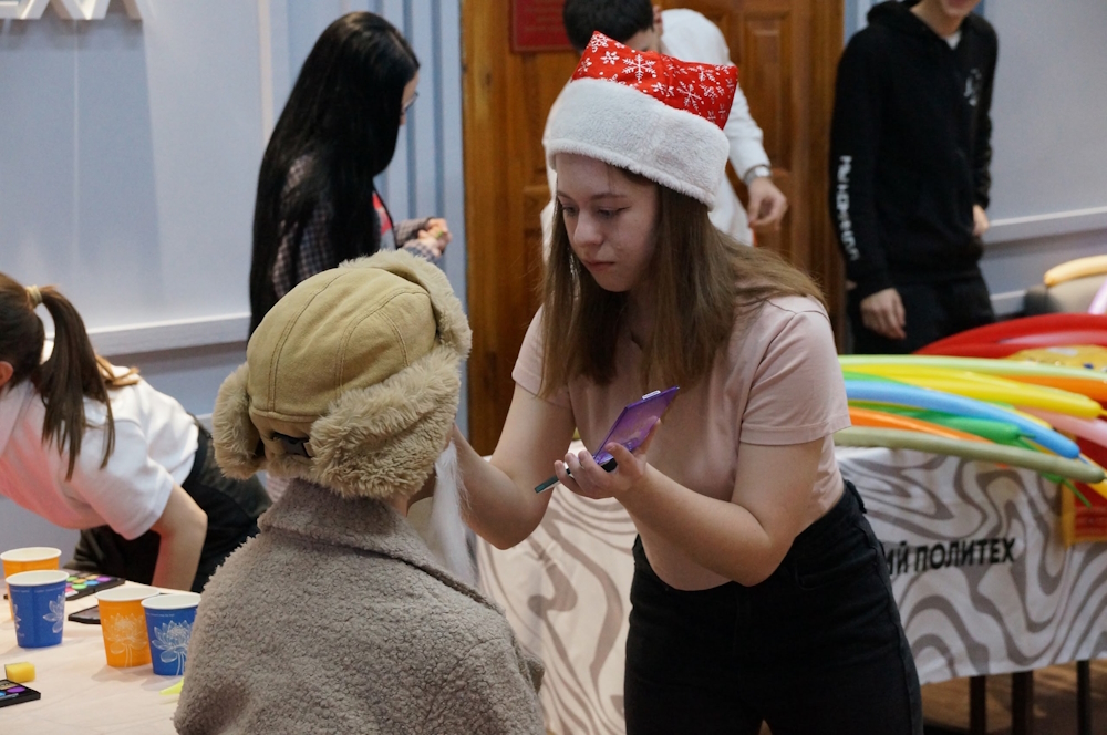 Студенты подарили ребятам настоящую сказку: интерактивный спектакль, мастер-классы, аквагрим, новогодние подарки и даже волшебное шоу гигантских мыльных пузырей! А после у детей была зажигательная фольгированная дискотека!