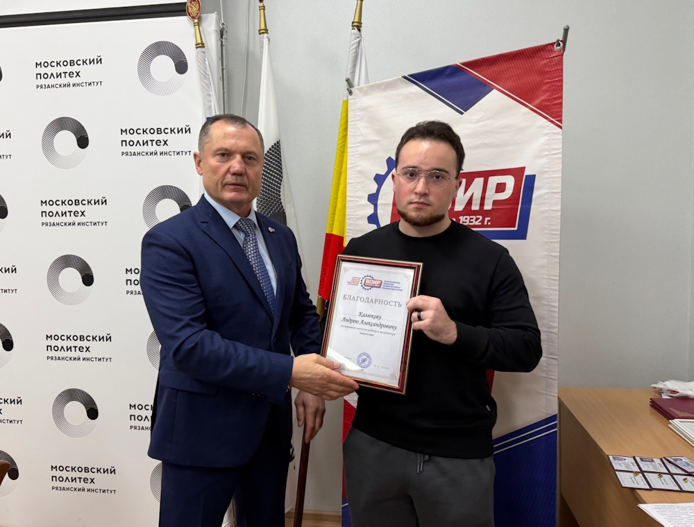 - Благодарность Рязанского отделения ВОИР студенту направления “Энергетика” Андрею Калюкову.