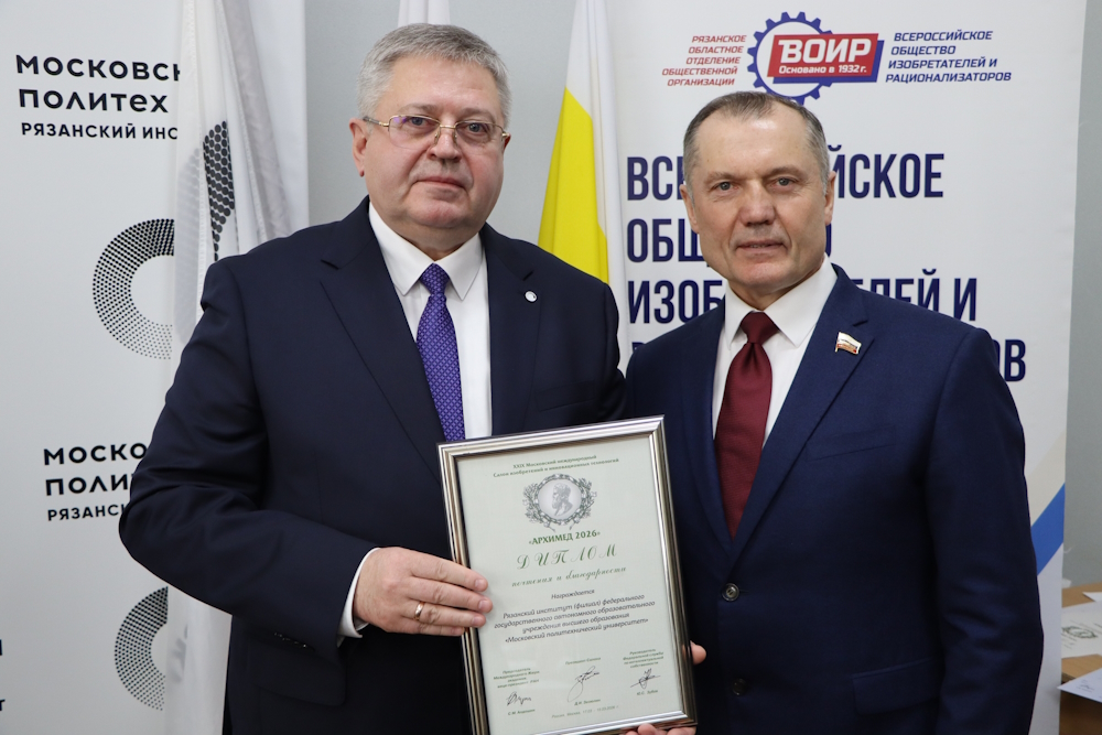 Диплом почтения и благодарности Салона “Архимед” вручен Рязанскому институту (филиалу) Московского политехнического университета. Это признание высоких результатов вуза и достойная оценка того, что институт подготовил такое количество интересных и значимых проектов.